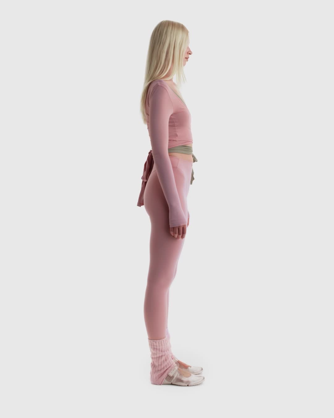 Studio inspired. Body approved. Our Stretch Knit fabric gives this long-sleeve wrap top a soft and lightweight feel. Easy to layer, it features a wide V-neck and cropped silhouette with ties at the waist for a shape-defining fit.