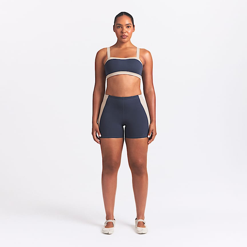 • Body: 80% polyester/20% spandex. Panels: 72% polyester/28% spandex. Panels lining: 88% polyester/12% spandex.