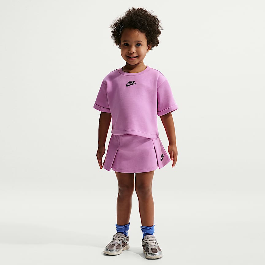 These performance shorts blend style and function. They're made of soft, flowy jersey knit fabric with an elastic waistband for a comfy fit, while the built-in undershorts create a layered look, and are boosted with moisture-wicking Dri-FIT technology to help kids stay cool and dry while they play.