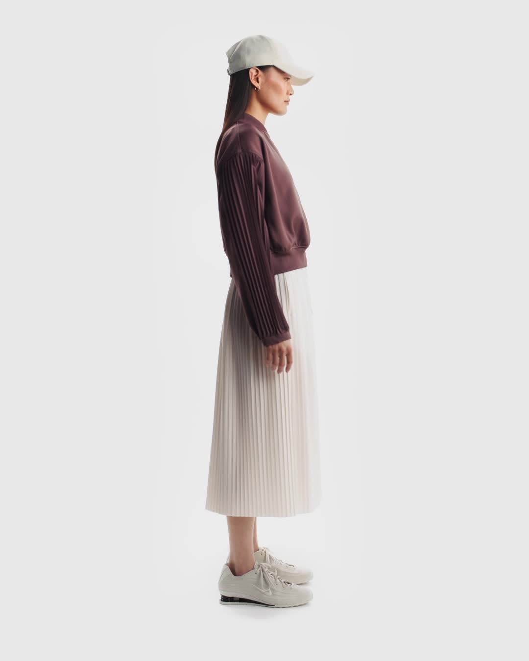 Sport-inspired style with a polished finish. This knit jacket has an extra roomy fit designed to hit at your waist for a boxy look. Pleated, woven sleeves add a touch of elegance.