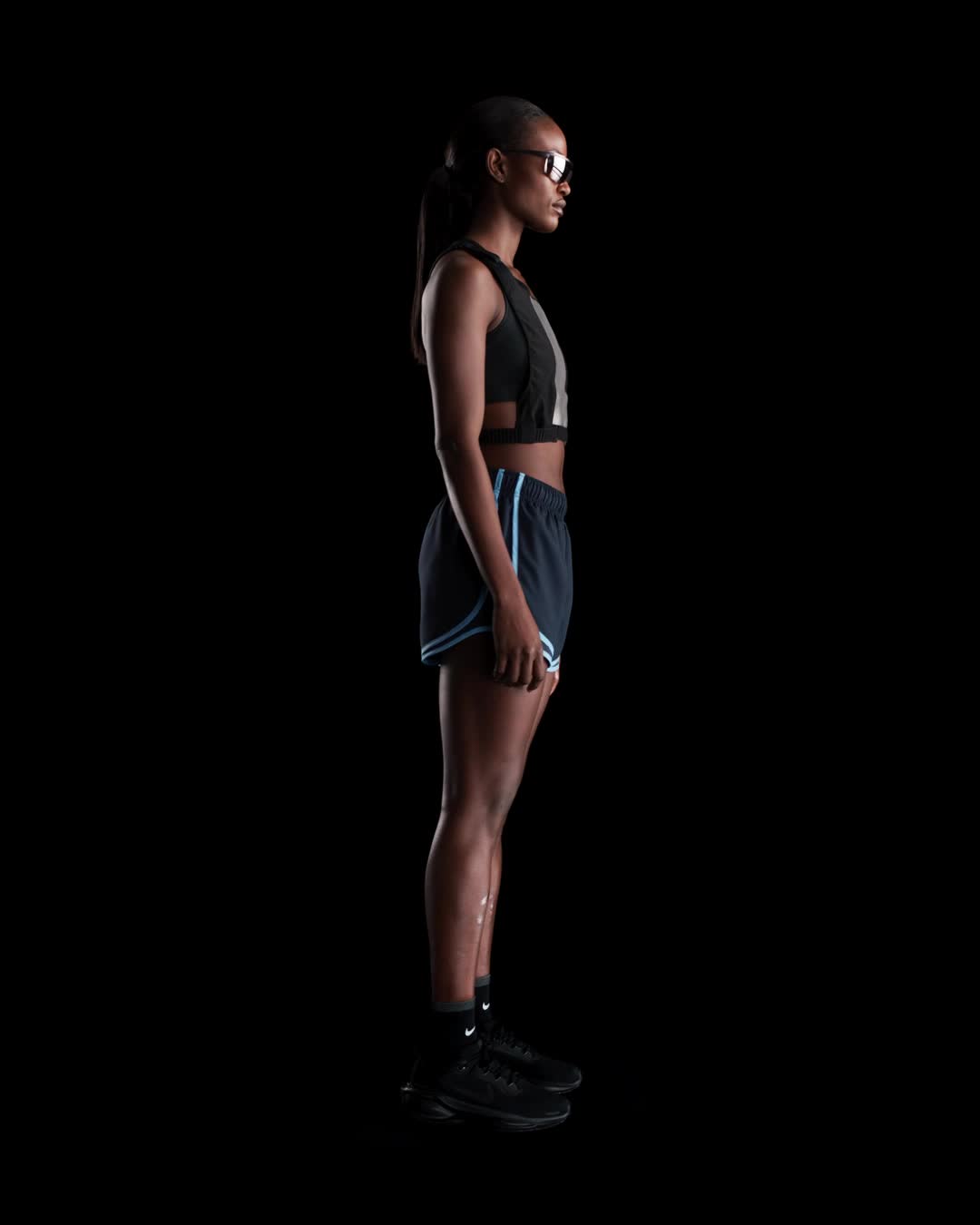 - Reflective Swoosh logo on left thigh