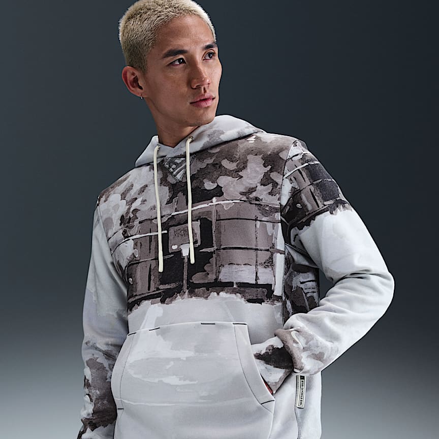 搶眼的滿版印花,為這款中磅數毛圈布連帽上衣注入活力。 布料採隨機裁剪,天底下沒有兩件完全相同的連帽上衣。