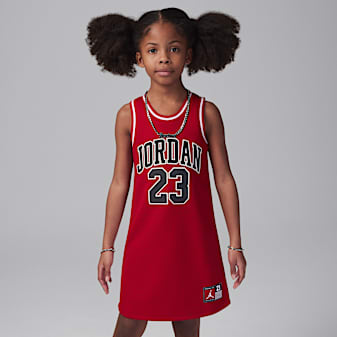 Tenemos lo que necesitas: un vestido Nike para niñas de preescolar hecho con tela suave y un corte amplio. Prueba combinar el vestido con unos shorts o unas mallas si tu pequeña quiere tener más cobertura y sumar algo a su estilo.