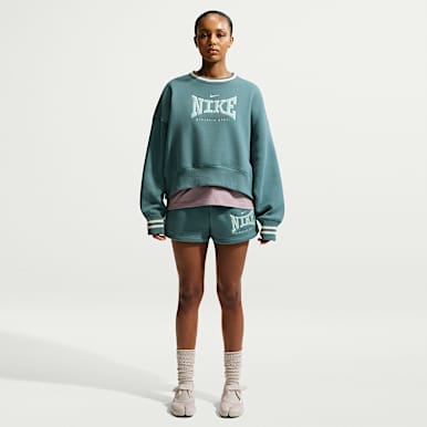 Cuando las temperaturas son altas (o si tu edredón es grueso), los shorts de tejido Fleece holgados Nike son perfectos. Los shorts de tejido Fleece y tiro alto Nike Sportswear Phoenix ofrecen un ajuste extraamplio y un cordón de ajuste seguro para evitar que la prenda se deslice mientras duermes.