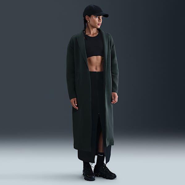 - Phoenix Fleece: esta versión del tejido Fleece Nike Sportswear ofrece una amplia variedad de cortes y estilos de sudaderas con gorro, desde sudaderas oversize de cierre completo hasta sudaderas de largo hasta la rodilla con cierre. Algunos estilos cuentan con tela de canalé de mayor largo en los puños para ofrecer un look más estructurado. Para armar un atuendo completo, considera combinar una sudadera con gorro Phoenix Fleece con unos pants de entrenamiento de pierna ancha y tiro alto o unos joggers entallados de ajuste slim.