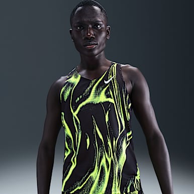 Si buscas una camiseta de tirantes específica para el día de la carrera, mira las camisetas sin mangas para carreras de la colección Nike Aeroswift. Estas partes de arriba son ligeras y elegantes, con una costura lateral que va de adelante hacia atrás para ayudar a reducir los roces.