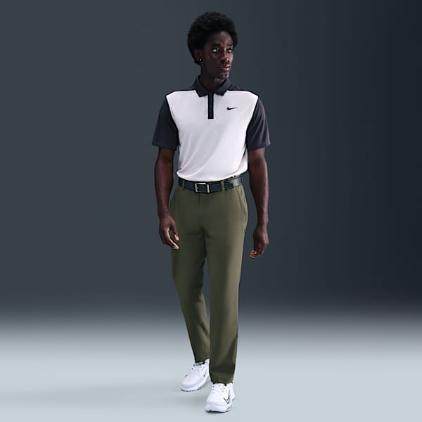 Los pantalones Nike Dri-FIT están diseñados para absorber el sudor del cuerpo para mantenerlo fresco, dispersando la humedad por la superficie de la tela para que se evapore más rápido. Los estilos de pantalón fabricados con la tecnología Nike Dri-FIT ofrecen ajuste slim y ajuste estándar, así que encuentra el que te permita mayor comodidad y combine mejor con la playera de golf que elijas.