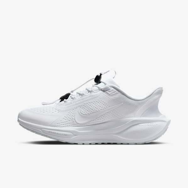 Una buena innovación simplifica lo complejo. El Nike Go FlyEase funciona porque la banda tensora y la articulación de doble estabilidad mantienen el calzado en una posición abierta y firme. Desliza la parte móvil para fijar la posición de bloqueo y vuelve a subir pisando el "soporte" del talón.