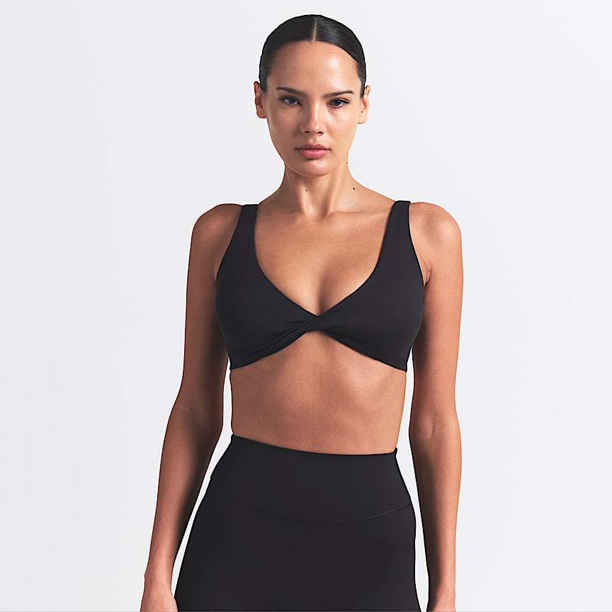 Este bra es el indicado para ofrecer comodidad durante todo el día o para los entrenamientos dinámicos. Su diseño de media sujeción ofrece un ajuste ceñido que ayuda a mantener todo en su lugar, y el tejido suave de densidad media se combina con un forro de tela de canalé que se seca rápidamente y se estira acompañando tus movimientos.