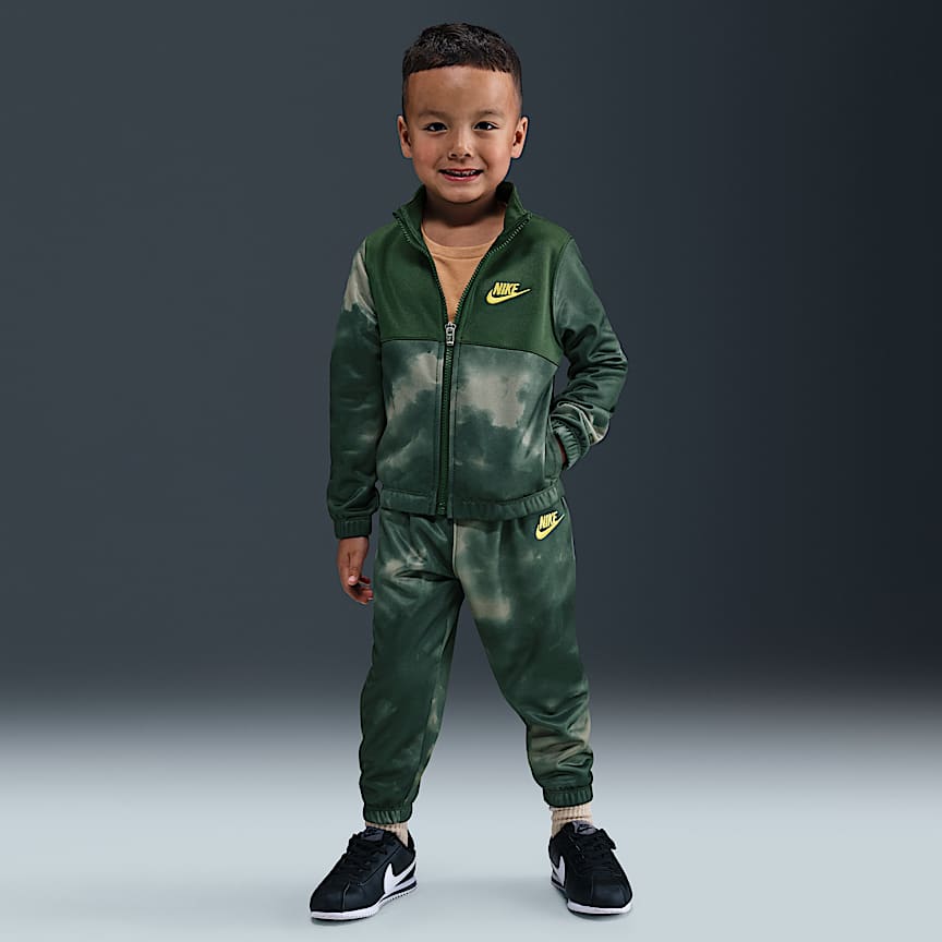 Este conjunto de dos piezas, confeccionado con tela tejida de punto adherida, está inspirado en el traje de calentamiento clásico. La sudadera con gorro tiene un cierre completo que facilita su uso en capas y los pants entallados que hacen juego tienen puños de tela de canalé y una pretina elástica para brindar un ajuste cómodo con el que los pequeños atletas pueden jugar libremente. Combínalo con cualquier camiseta de tirantes o playera Nike para tener un look completo que haga juego con sus tenis.