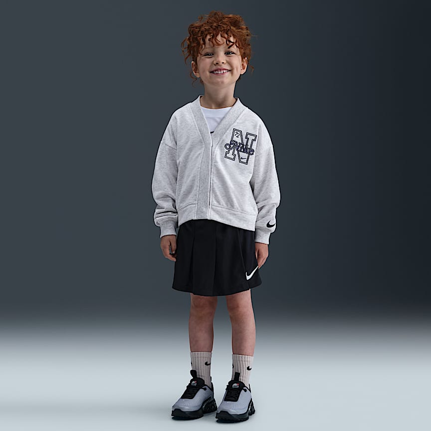 Este conjunto deportivo está diseñado para que los más pequeños puedan jugar con comodidad y libertad. La chamarra tiene un cierre completo que facilita usarla encima de otras prendas, el cuello alto agrega calidez adicional y los pants entallados que hacen juego tienen puños de tela de canalé y una pretina elástica cómoda. Ambas prendas están mejoradas con tecnología Dri-FIT de secado rápido y absorbente de humedad para mantener la frescura y transpirabilidad de los pequeños mientras juegan. Combínalo con cualquier camiseta de tirantes o playera Nike para conseguir un look completo que combine con los tenis de los atletas más pequeños.
