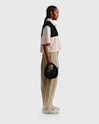 Este pantalón, definido por su volumen, añade dimensión a todos tus pasos. El algodón de alta densidad con pinzas en la cintura ofrece un look estructurado.