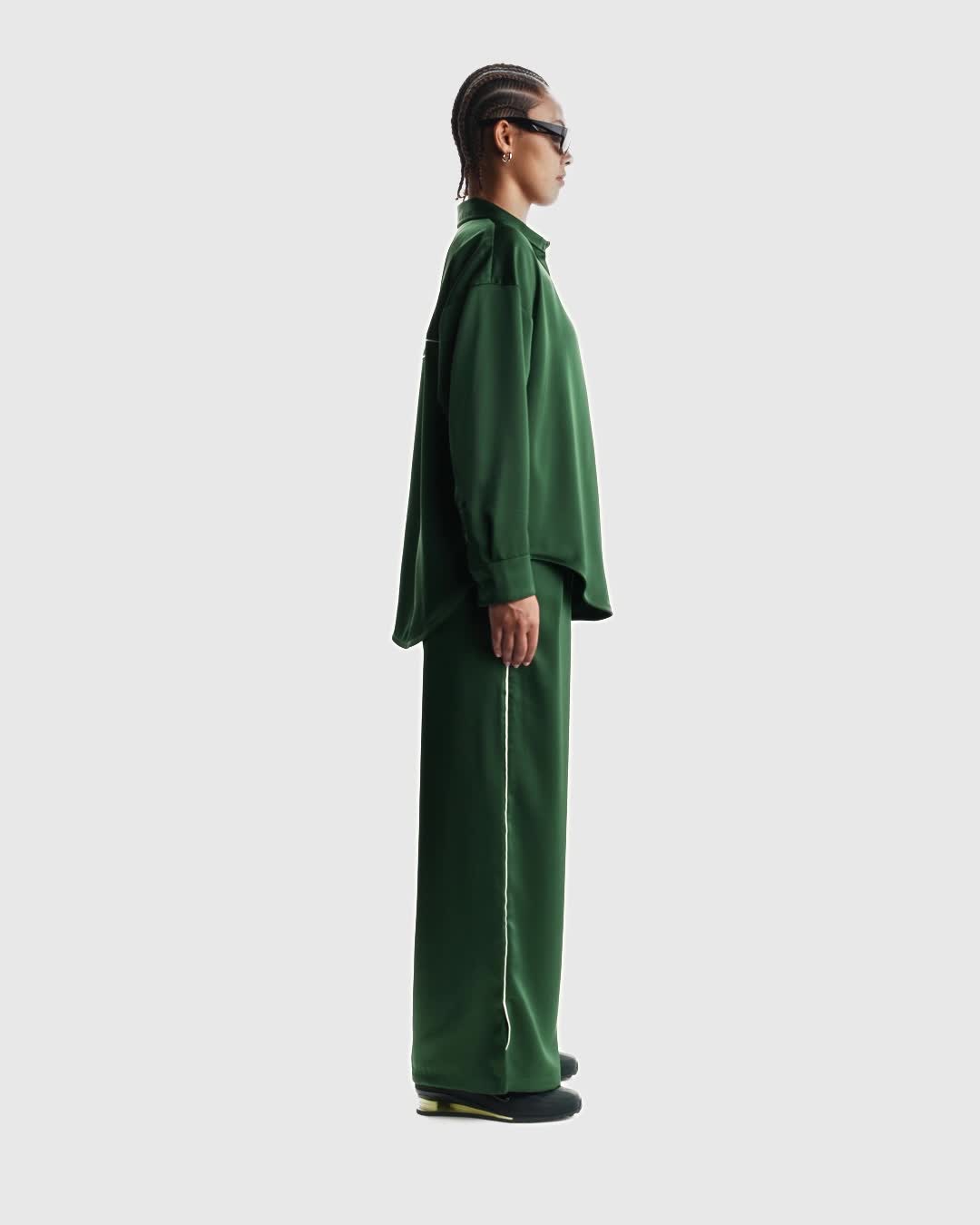 Pants de satén de tiro medio holgados para mujer