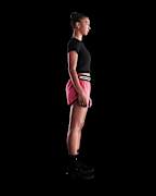 Apoya la serie de carreras femeninas que reavivan la noche con esta playera ligera y elástica con gráficos.