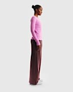 Playera de manga larga de tela de canalé ajustada para mujer