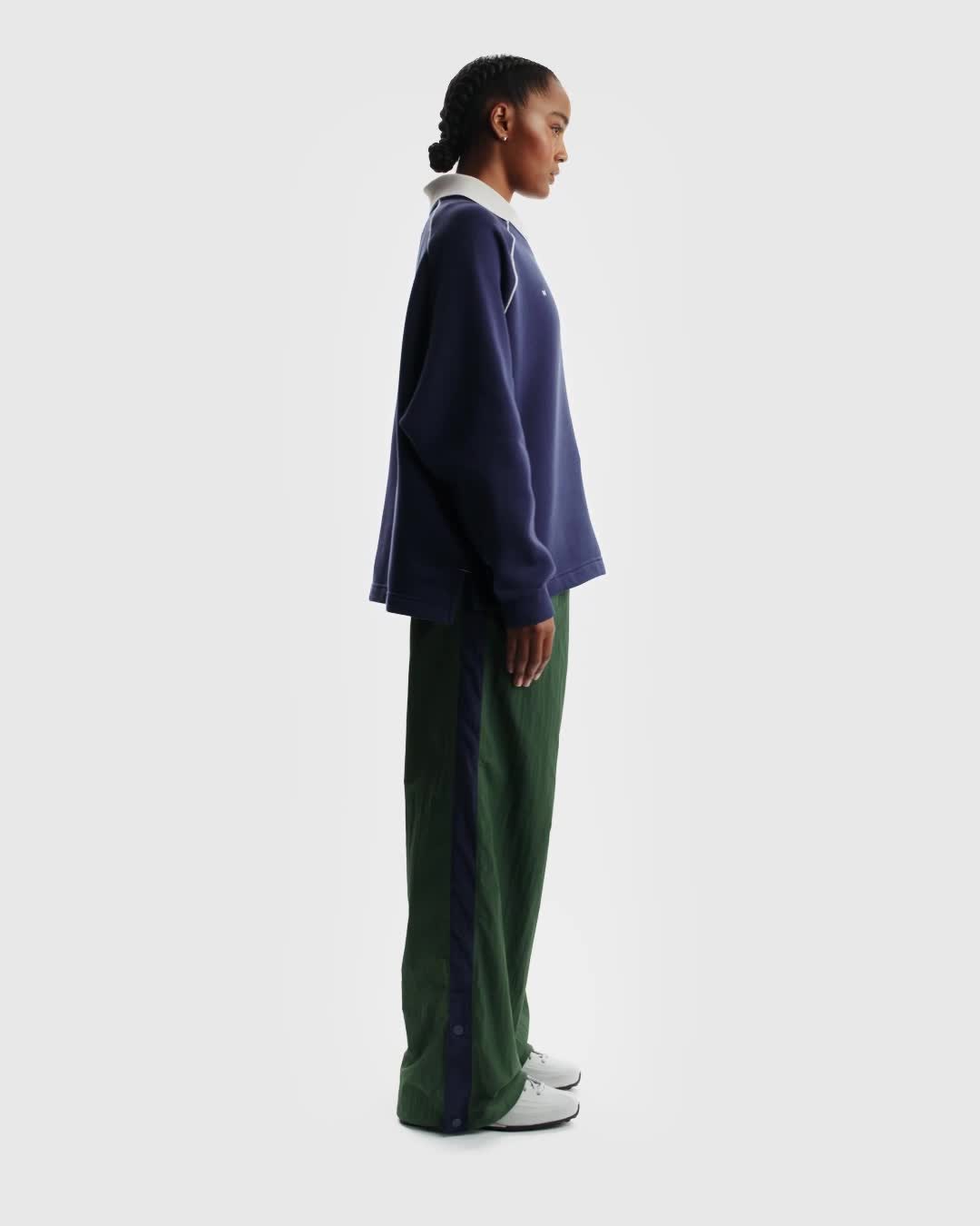 Este polo está confeccionado en un tejido Fleece cepillado de densidad media, el cual es muy suave por dentro y terso por fuera. Los hombros caídos y el ajuste más amplio se combinan con un cuello de tejido Knit plano y detalles de ribete para ofrecer un look holgado pero con un toque refinado.