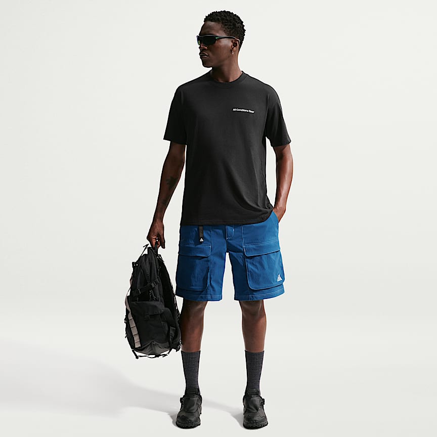 Los bolsillos para las manos y los amplios bolsillos tipo cargo tienen cierres para guardar tus artículos imprescindibles de forma segura. La pretina elástica tiene un cinturón tejido ligero con una hebilla de liberación rápida que permite personalizar el ajuste. Un mosquetón ACG se sujeta en la trabilla de la pretina.