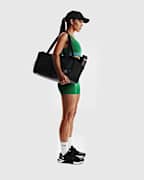 • La tela suave, ligera y elástica, se seca rápidamente para mantenerte preparada cuando el entrenamiento sube de intensidad.