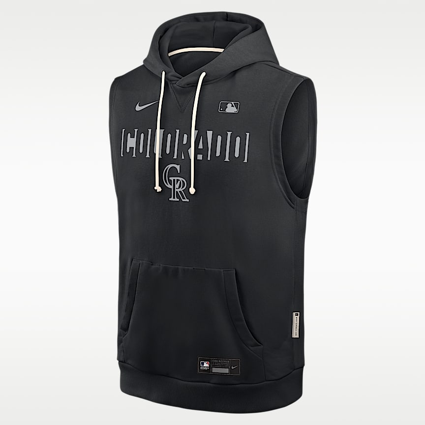 La sudadera con capucha Colorado Rockies Authentic Collection, con un diseño oficial del equipo, combina tecnología que absorbe el sudor con mangas raglán para mantener la comodidad y facilitar la movilidad en los días más fríos.