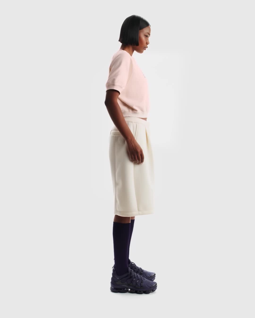 Esta sudadera está confeccionada en tejido Fleece de French Terry de densidad media con diseño de bucle suave en el interior, lo que la hace naturalmente transpirable. Su corte cropped y ligeramente cuadrado, y sus aberturas en tela de canalé, le dan un look cómodo pero a la vez elegante.
