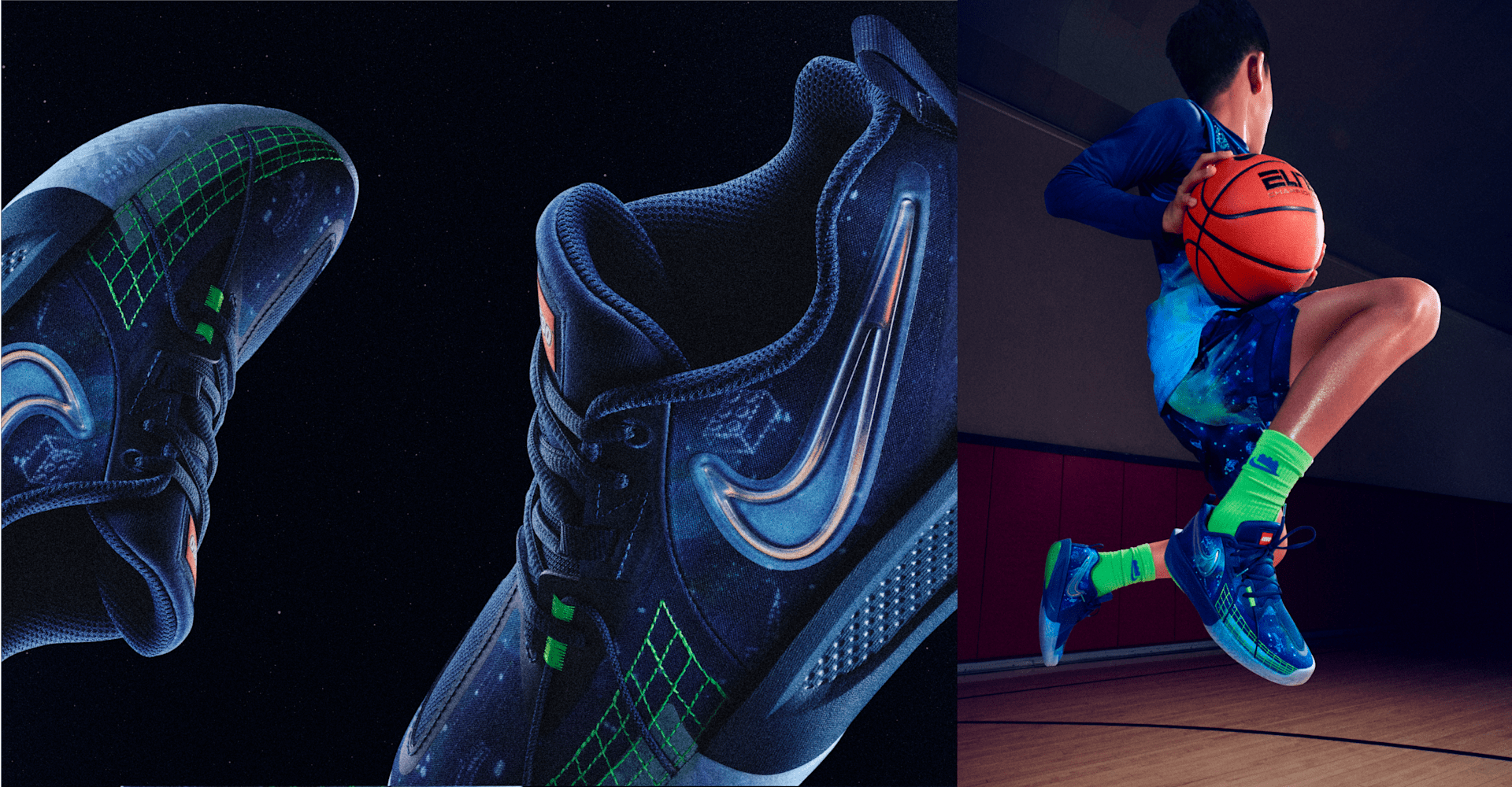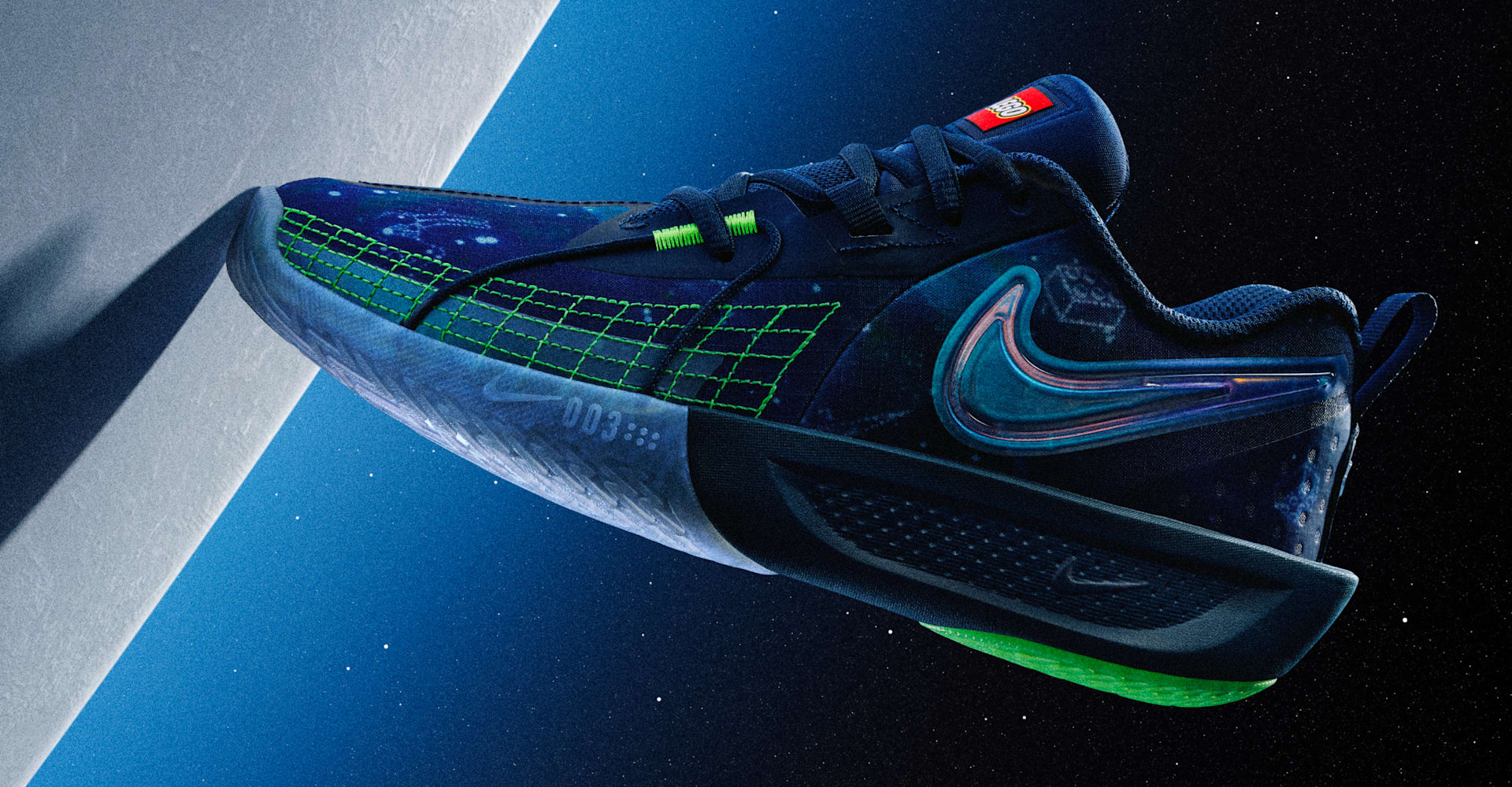Adéntrate en la colección Nike x LEGO® y obtén la autorización para viajar al espacio con nuestros G.T. Cut 3 superexitosos. En la parte superior escondimos todos nuestros detalles favoritos de LEGO en el estampado inspirado en la galaxia. La tracción avanzada en la planta del pie permite detenerse en un instante; la espuma ligera y elástica amortigua los aterrizajes después de hacer tiros con gravedad cero. Amárrate las agujetas y prepárate para jugar entre las estrellas.