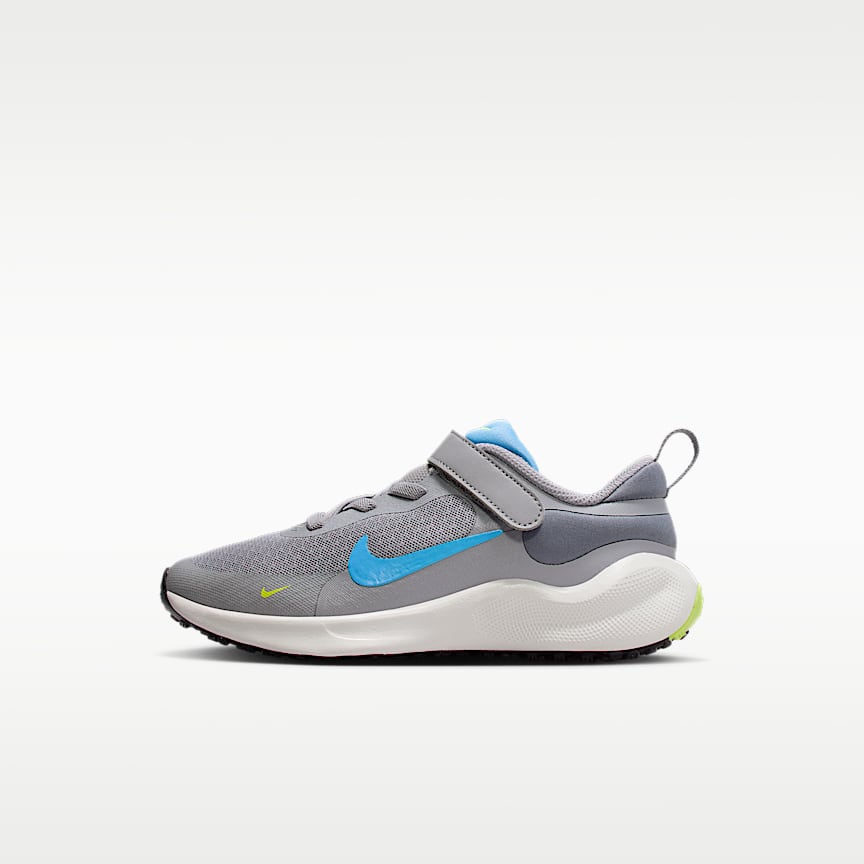 Una banda Dynamic Fit envuelve la parte media del pie y se combina con agujetas elásticas para proporcionar a los niños una sensación de estabilidad y contención. La correa ajustable de cierre por contacto ayuda a los niños a fijar rápidamente su ajuste.