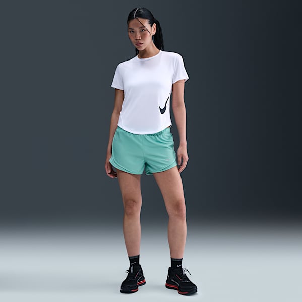 With numerous pairs of Nike women's running shorts available, you're bound to find a pair that has the features you need with a look to match your style. Nike women's running shorts come in a variety of colours—from basic black and white to Hot Pink, purple and navy—and prints, too.