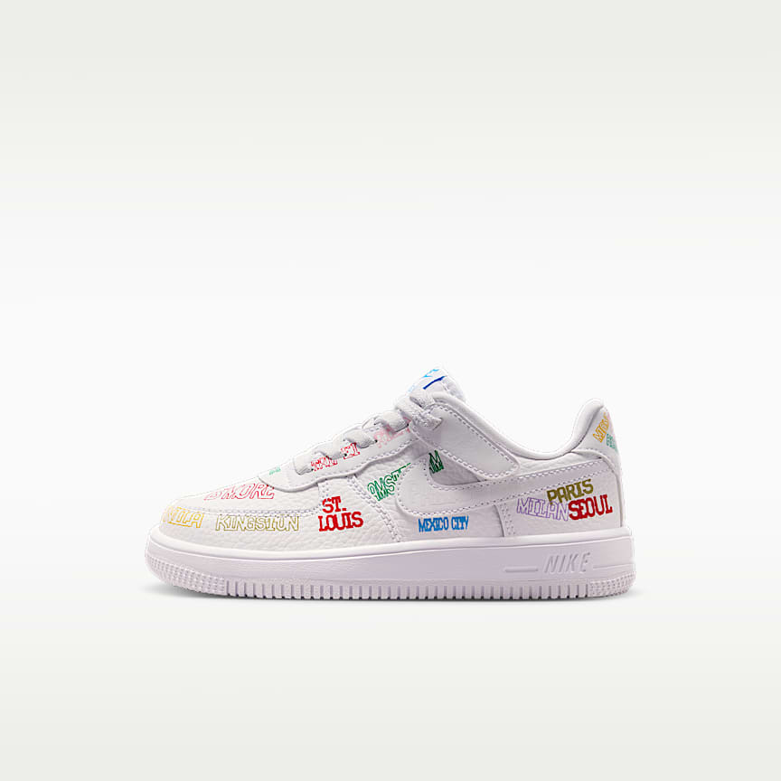 Do a double take and double your fun with the Nike Air Force 1 LV8 3. Repeat "Air" branding on the heel brings a new look, while the '82 icon still keeps the classic feel and design remade just for kids.